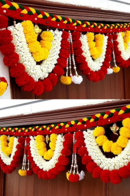 Multicolor Woolen Pom Pom Handmade Traditional Toran For Home Shop & Temple