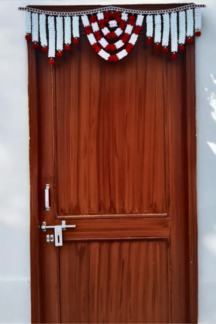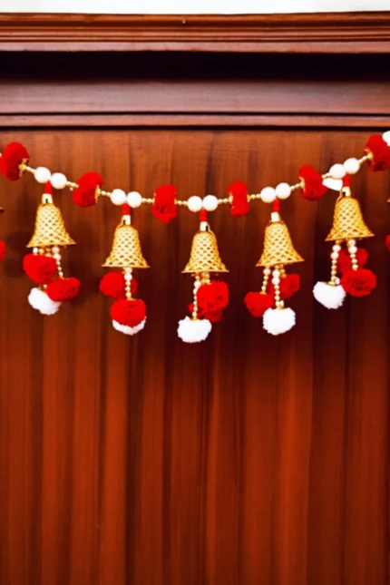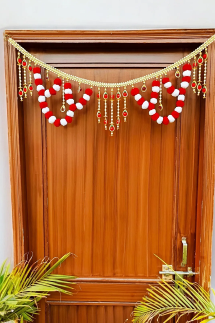 Red Woolen Pom Pom Handmade Traditional Toran For Home Shop & Temple
