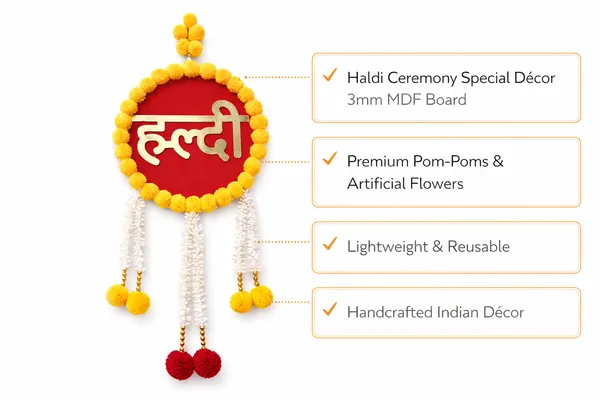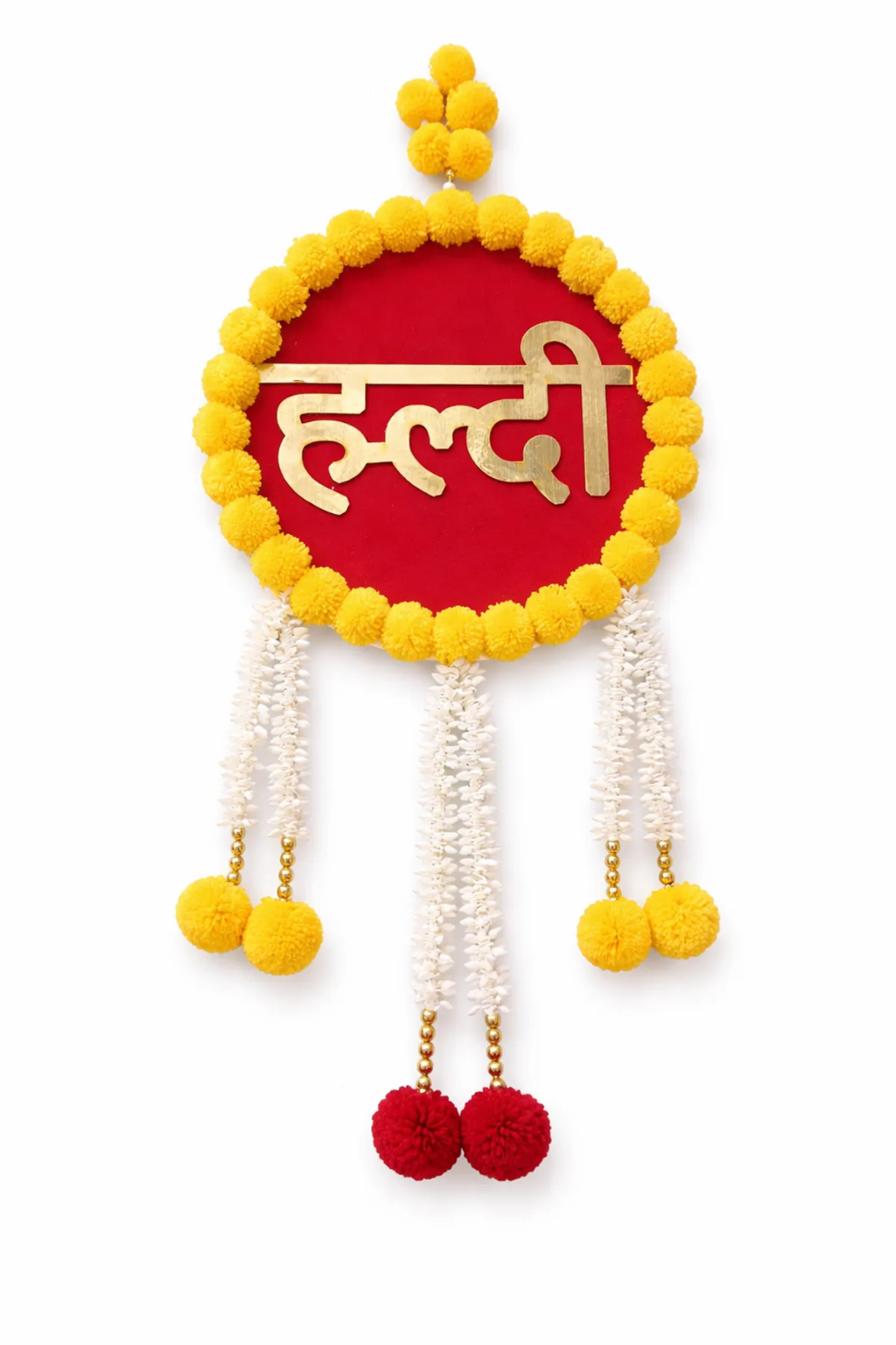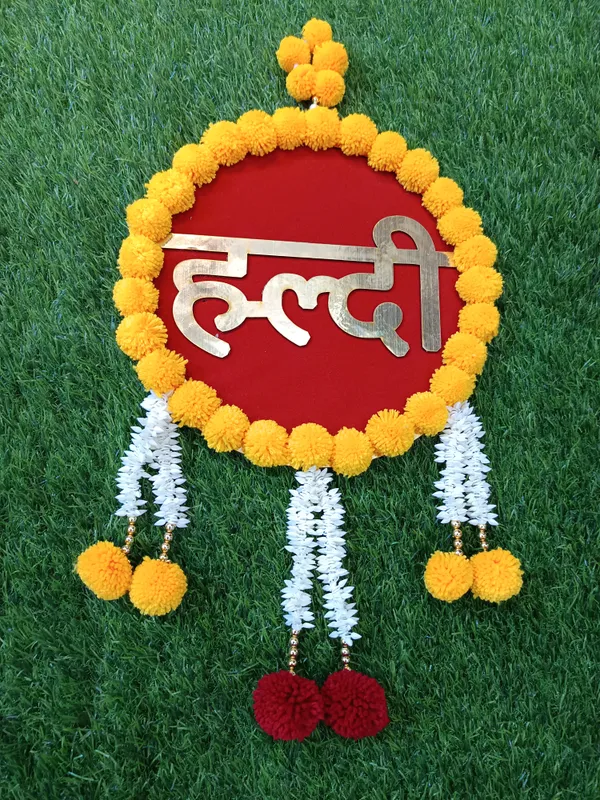 Be the first to review “Golden Yellow Mdf Pom Pom Wall Hanging For Wedding” Cancel reply