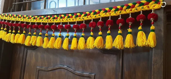 Multicolor Woolen Pom Pom Handmade Traditional Toran For Home Shop & Temple