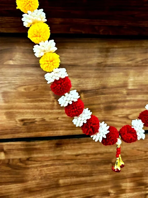 It Is A Traditional Item Made Up Of Acrylic Yarn & Artificial Pearls Handcrafted By Artisan Which Is Ideal For Hanging In Your Home. Decorate Your Temple With This Exquisitely Well-Designed Product. This Is A Traditional Decorative Hanging. This Can Be Hanged On Home Temple God Idols As Well As On Photo Frames And Can Be Used On Many Occasions Like Pooja, Festivals, House Warming, Marriages, And Inaugurations. Decorate Your Home/Doors During The Festive Season And Bring Good Luck To Your Home With This Auspicious And Decorative Garland/Mala .A Beautiful Piece Of True Indian Art For Your Home A Nice Gift Item For Indian Art Lovers